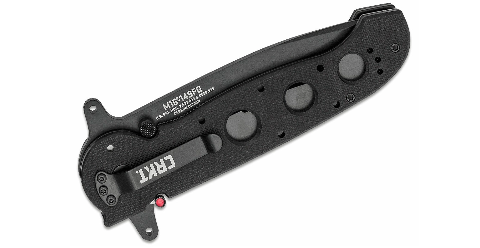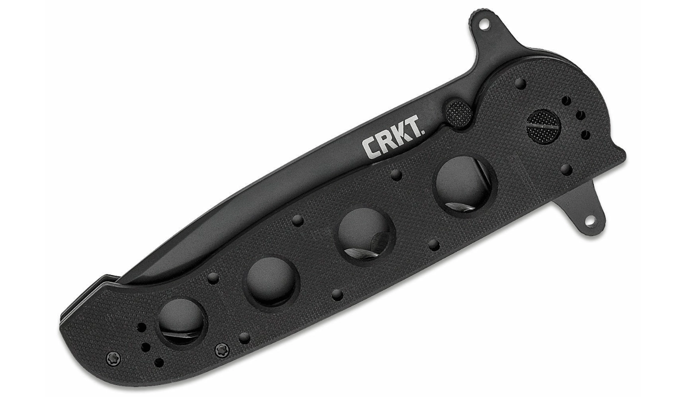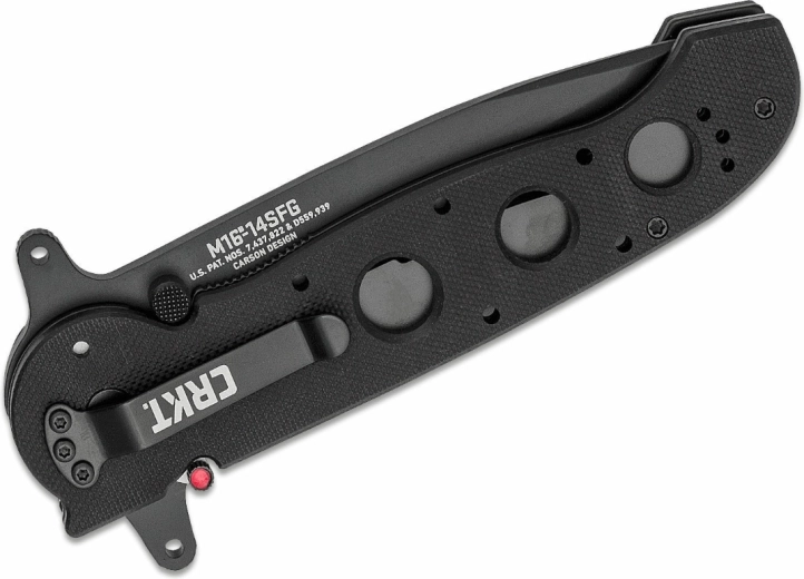 CRKT M16-14SFG er en pålidelig taktisk kniv designet til krævende brug. Tanto-klingegeometrien med delvist savtakket æg klarer både snit, gennembrydning og skæring af reb eller stropper. Den sorte overfladebehandling minimerer genskin og beskytter stålet mod korrosion.