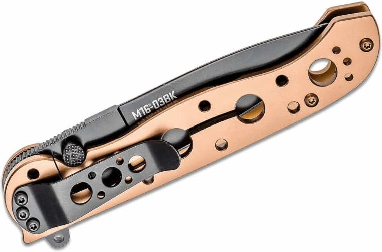 Leder du efter en pålidelig og stilfuld kniv til hverdagsbrug? CRKT M16-03BK i sort-bronzefarvet kombination forener robuste materialer, sikkert greb og hurtig betjening. Klingen i kvalitetsrustfrit stål 12C27 med Black Oxide-overflade giver god skæreevne og korrosionsbestandighed, mens Frame Lock sikrer sikker anvendelse.