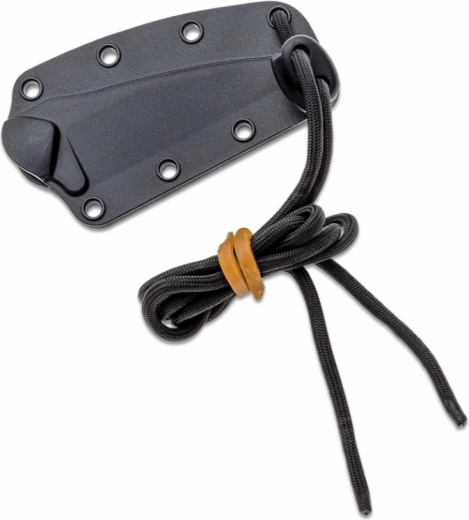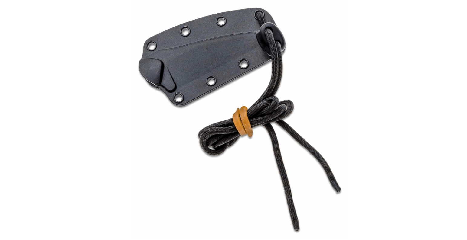 Det ergonomiske håndtag i G10 i sort‑grøn udførelse giver et sikkert greb og er suppleret med hul til snor. Den gennemgående full‑tang konstruktion øger både holdbarhed og stabilitet under skæring, mens den lette Kydex-skede med snor muliggør komfortabel halsbæring eller diskret EDC.