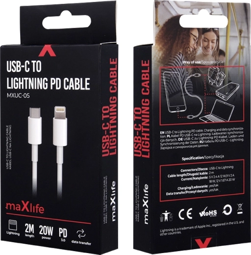 Maxlife USB‑C – Lightning-kablet er det ideelle valg til daglig opladning og dataoverførsel. Takket være understøttelse af hurtigopladning 20 W kan du nemt fylde strøm på kompatible Apple-enheder. 2 meters længde giver mere frihed, når du bruger telefonen under opladning derhjemme, på kontoret og på farten.