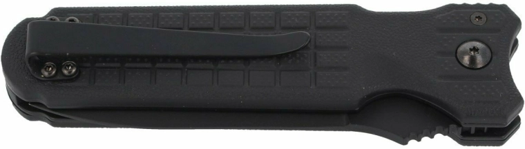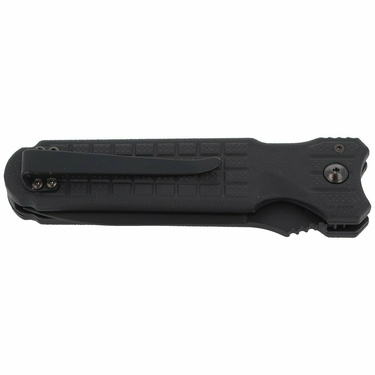 Det ergonomiske FRN-skæfte i helsort udførelse er rillet for et sikkert, skridsikkert greb selv under krævende forhold. Lommeclippen muliggør diskret og behagelig bæring. Denne taktiske automat er ideel til både professionelle og entusiaster, der søger et robust EDC-værktøj med fokus på sikkerhed og hurtig betjening.