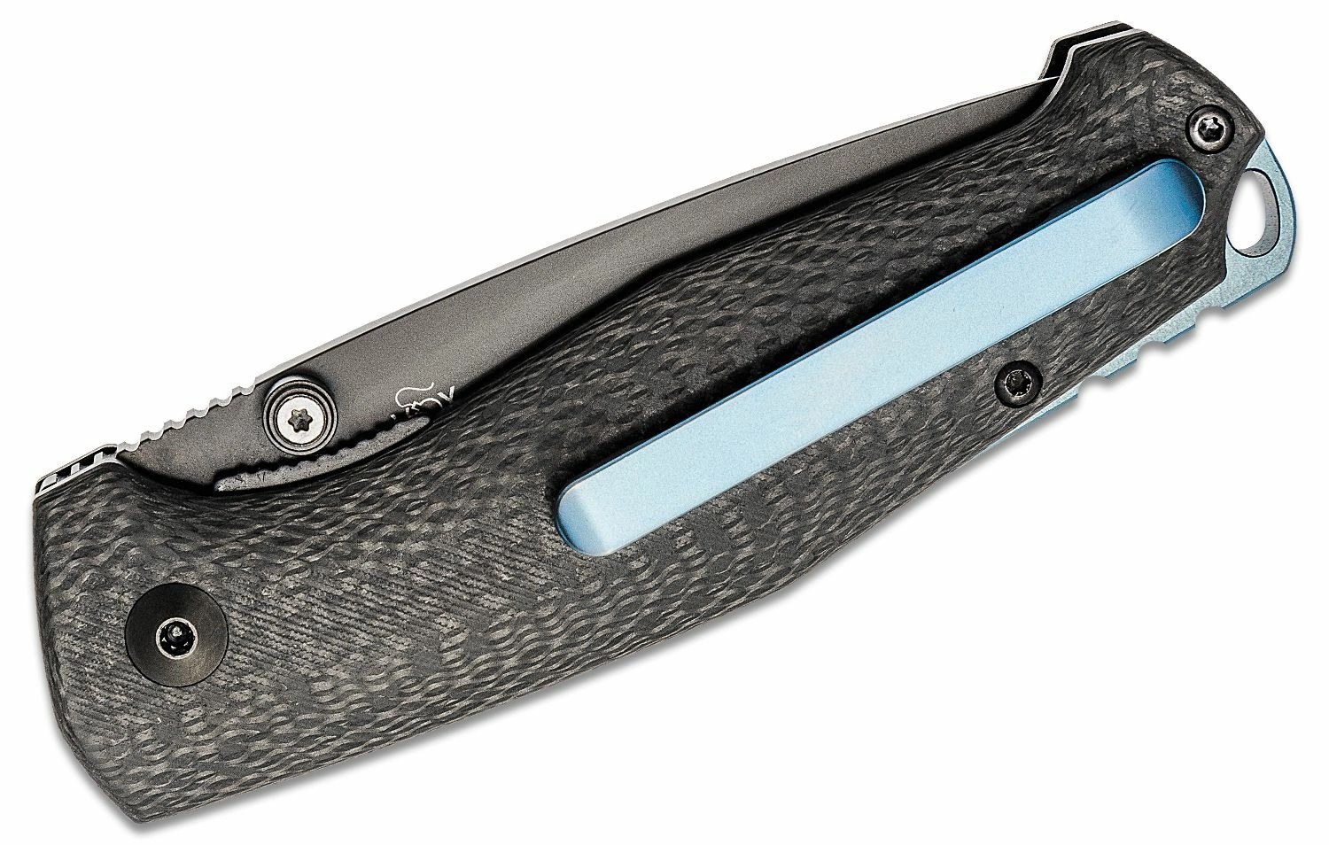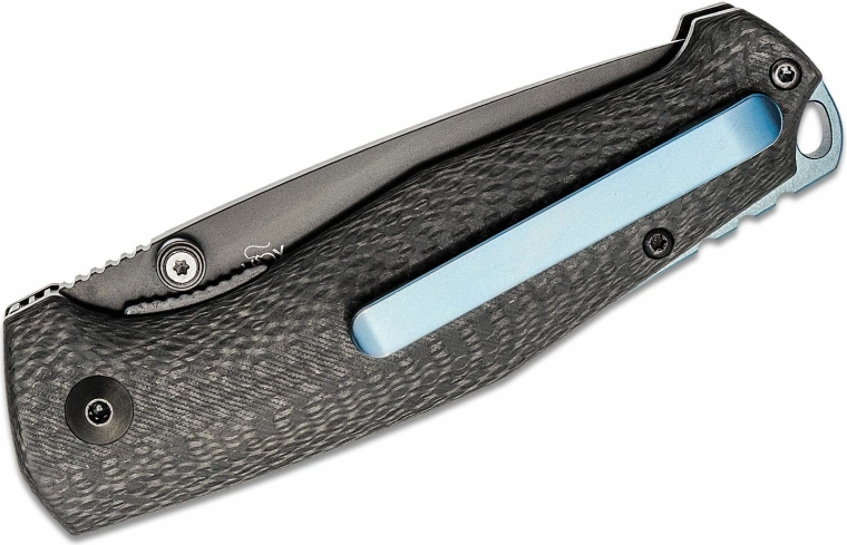 Det ergonomisk formede kulfiberhåndtag med elegant blåt indlæg ligger fremragende i hånden. Den praktiske lommeklip muliggør diskret bæring, og hul til snor udvider mulighederne for fastgørelse. Kniven er ideel til EDC, vandring og lette arbejdsopgaver.