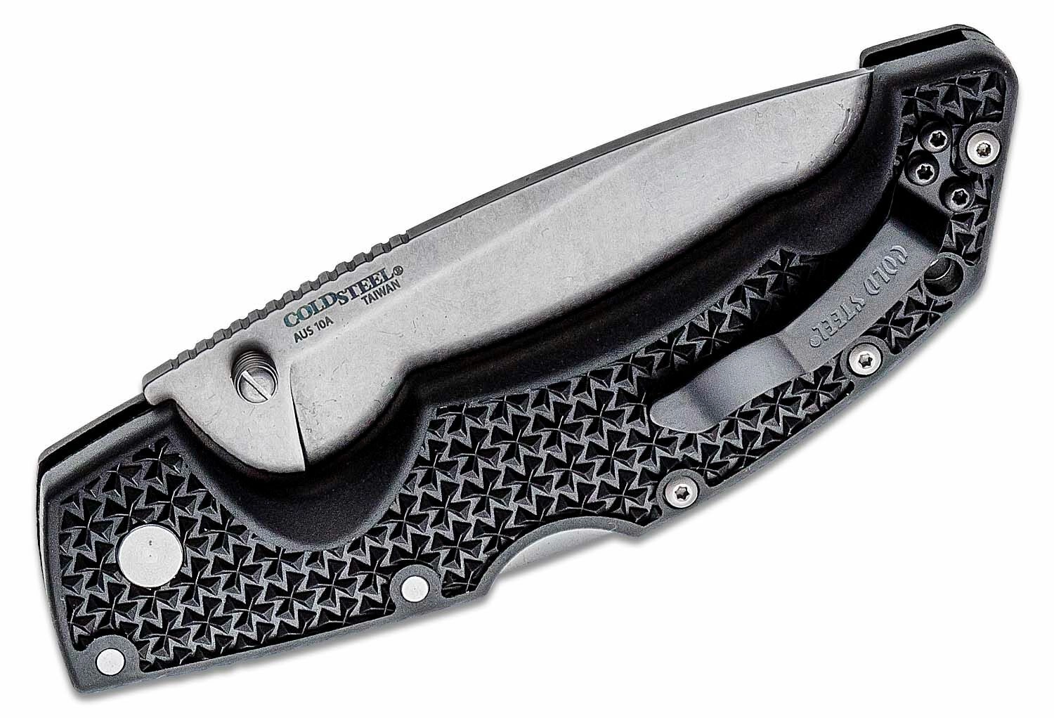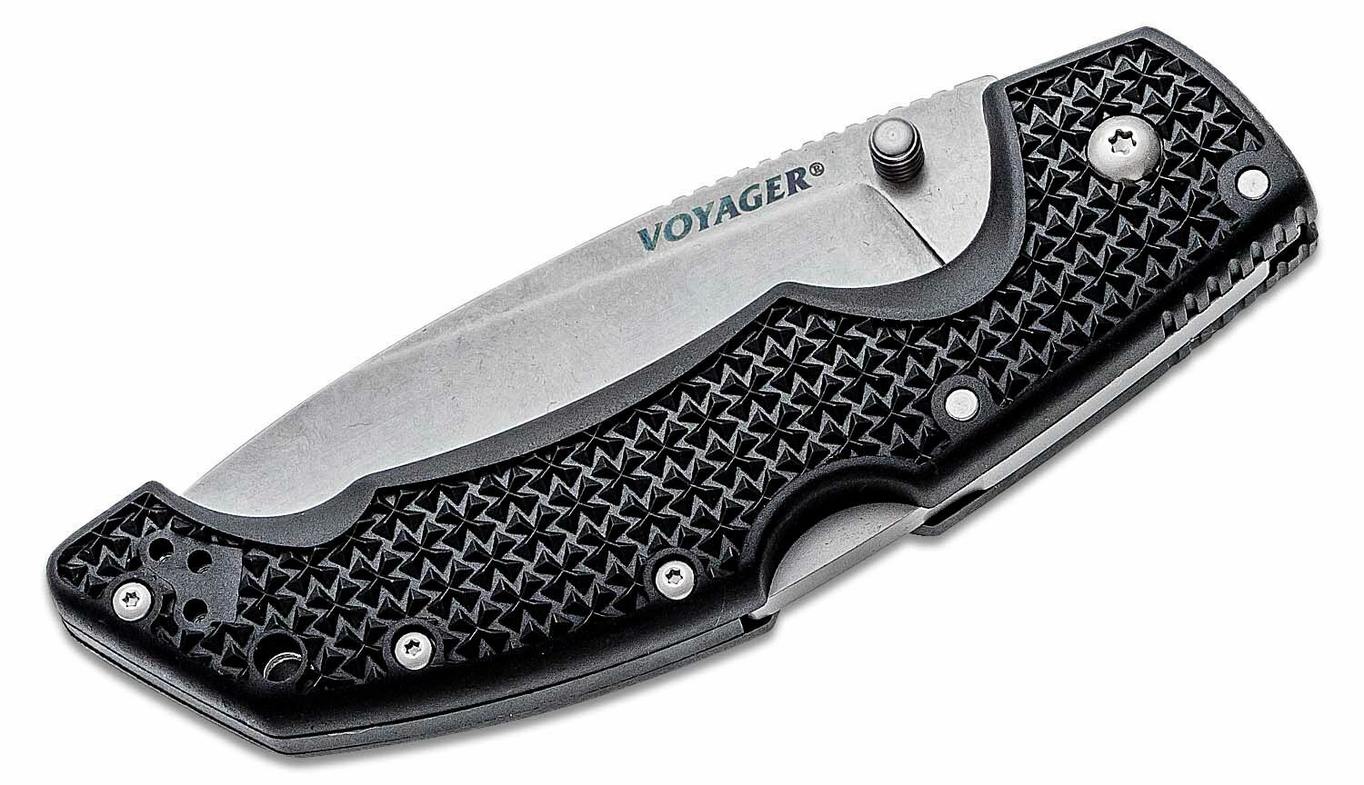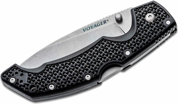 Den alsidige foldekniv Cold Steel Voyager Large Drop Point er et pålideligt valg til jagt, vandring og daglig brug. Den byder på en klinge i japansk AUS10A-stål med stonewash-finish, en sikker Tri-Ad Lock-lås, tommelstud for hurtig åbning og et let, men robust Griv-Ex-håndtag med lommeklip.