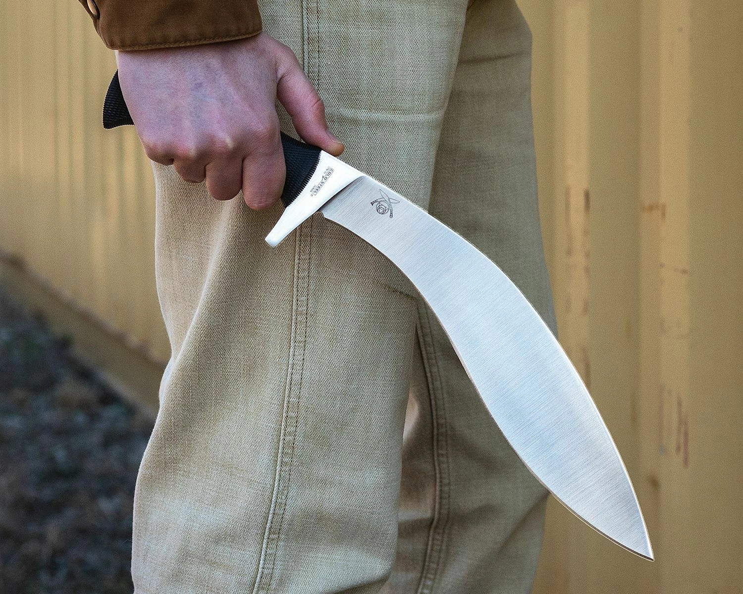 Den brede, krumme klinge med markant bug giver massiv huggekraft og dyb indtrængning i materialet – ideel til at hugge grene, forberede lejr og krævende udendørsopgaver.