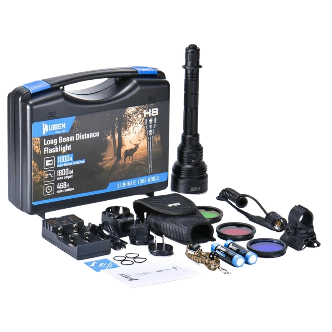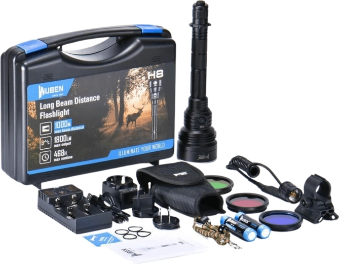 Den taktiske lygte WUBEN H8 Deluxe Kit er baseret på CREE XHP35 HI-dioden, som leverer en stærk, fokuseret stråle med rækkevidde op til 1000 meter. Stabil strømforsyning sikres af 2× Li‑ion 18650 (inkluderet), samt en praktisk batteristatusindikator. Til hurtig indsats er der Turbo-tilstand samt de taktiske tilstande Strobe og SOS.