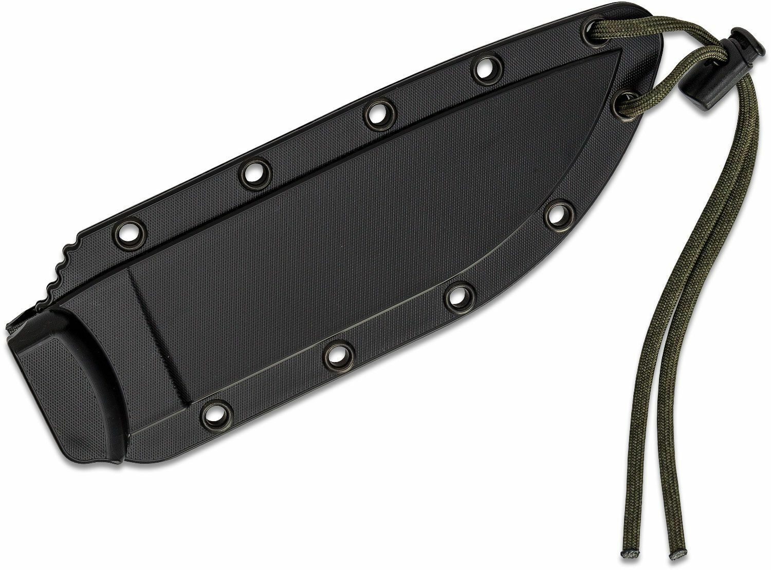 Det ergonomiske 3D G10-greb med tekstur giver sikker håndtering også med handsker eller i vådt vejr. Den fuldt gennemgående full-tang konstruktion sikrer maksimal styrke og pålidelighed. Pakken inkluderer en slidstærk plastskede med flere monteringsmuligheder for sikker bæring.
