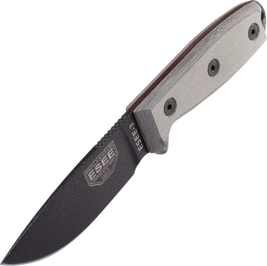 ESEE Model 3 er en kompakt og pålidelig fast kniv til outdoor, bushcraft og survival. Den tilbyder 1095 kulstofstål med sort overfladebehandling, full-tang konstruktion for maksimal holdbarhed og et ergonomisk Micarta-greb i grå. Inkluderer robust Zytel-skede med mulighed for montering på udstyr takket være MOLLE-kompatibilitet.