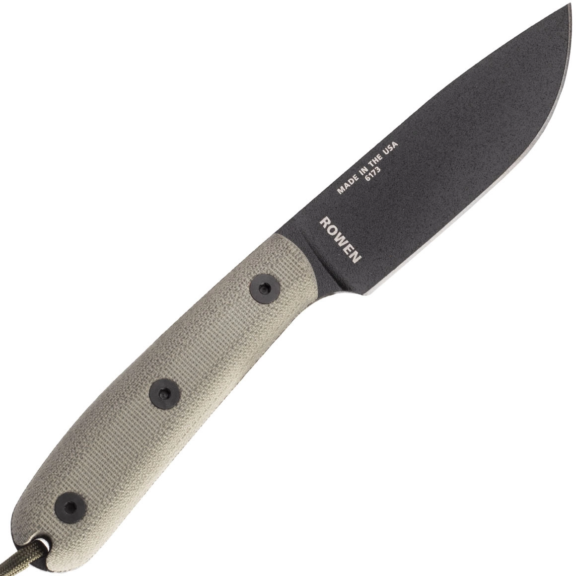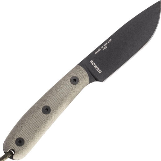 Den kraftige drop point-klinge med pulverlakeret belægning kombinerer aggressiv skæreevne, let slibning og øget modstand mod slid og korrosion – ideel til bushcraft og overlevelse.