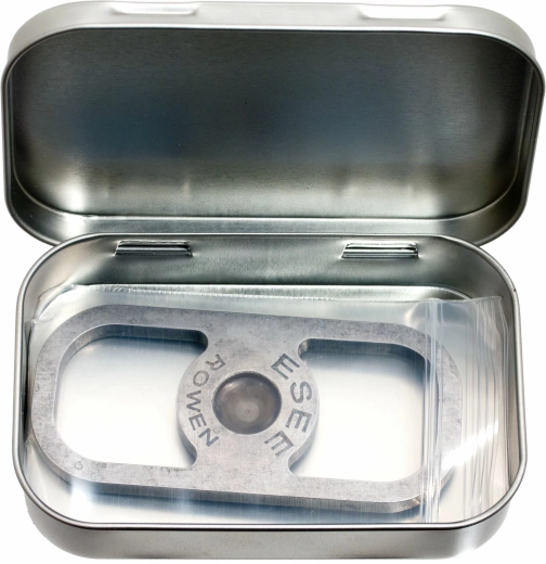 Det gennemtænkte design giver flere funktioner i ét: de skarpe kanter fungerer som en effektiv skraber til ferro-stang, og den centrale spids bruges som tap til buebor. Den medfølgende blikæske med klaplåg er perfekt til fremstilling af forkullet stof (char cloth) og til sikker opbevaring af små optændere.