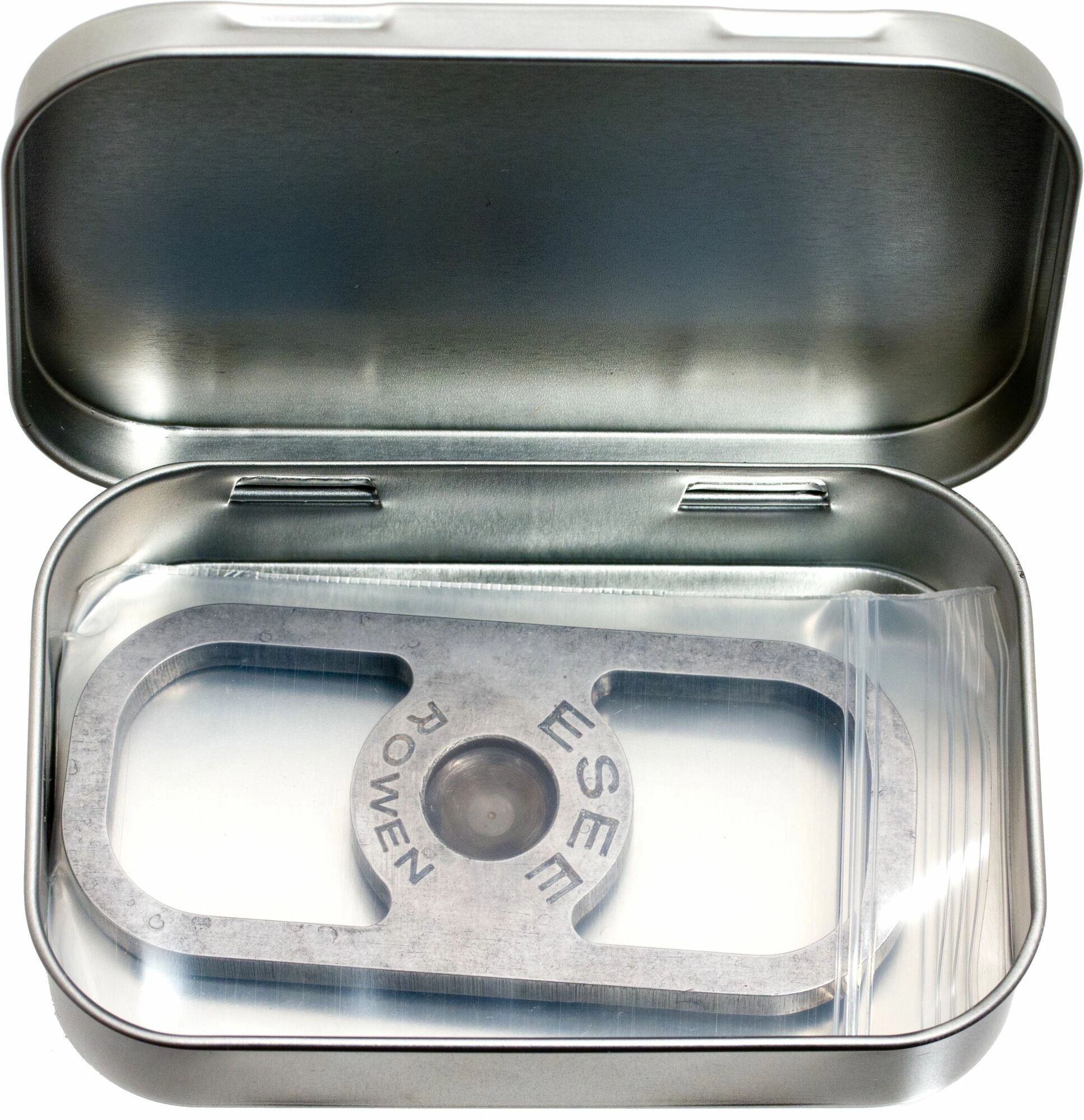 Kompakt ildstål ESEE Fire Steel af 1095 kulstofstål til pålidelig optænding i naturen. Skarpe kanter fungerer som en skraber til en ferroceriumstang, og den centrale spids er beregnet til en buebor. Medfølger en metalæske med klaplåg, velegnet til fremstilling af forkullet stof og opbevaring af optænding.