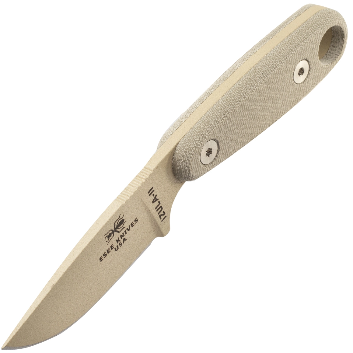 ESEE Izula II DT er en lille, men usædvanlig kapabel fast kniv inspireret af den sejlivede myre fra den peruvianske jungle. Takket være de kompakte mål bæres den komfortabelt om halsen eller diskret i EDC-udstyr, samtidig med at den bevarer fremragende kontrol via en markant finger-choil og riflet tommelfingergreb på ryggen.