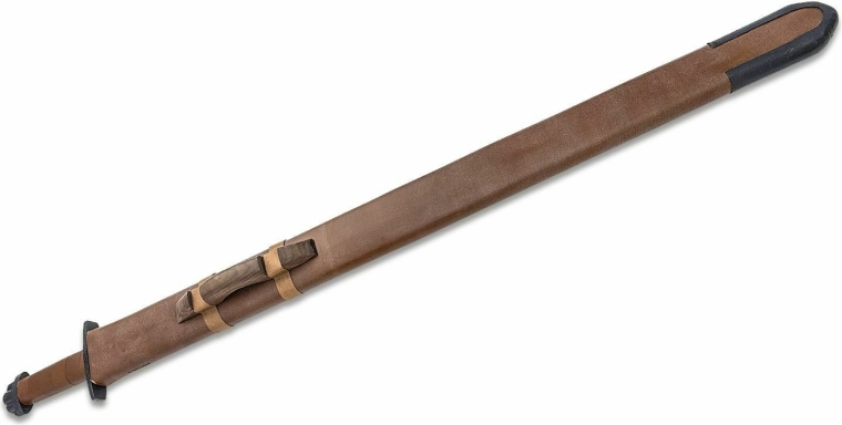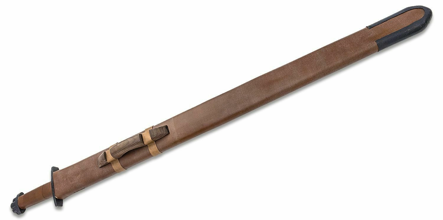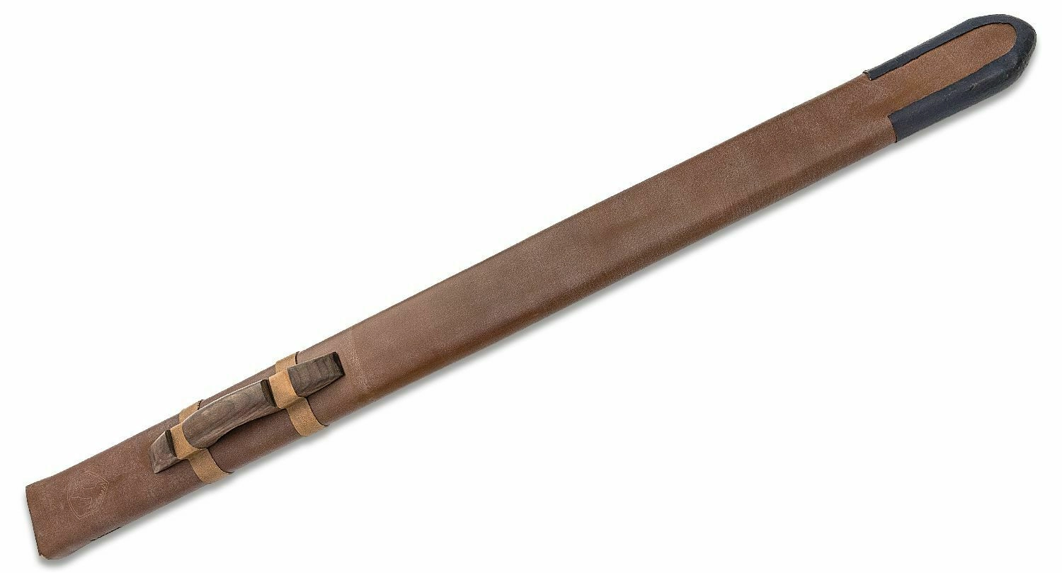 Den robuste læderskede med forstærkede ender beskytter klingen og gør det nemt at transportere samt præsentere sværdet elegant i interiøret.