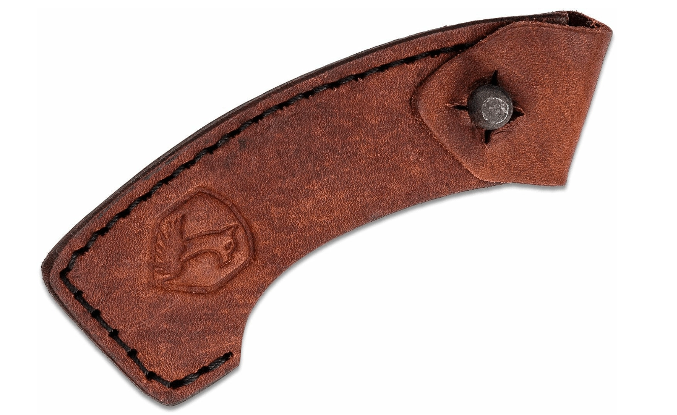 Med i pakken følger en håndsyet læderskede, som beskytter æggen og gør sikker transport nemmere. Dekorative graveringer i træet giver værktøjet et autentisk udtryk inspireret af Valhalla uden at gå på kompromis med funktionaliteten i felten.