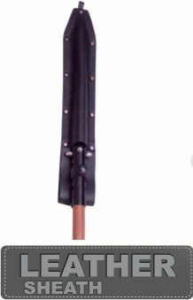 Træhåndtaget af hårdt tropisk træ er glat forarbejdet for et sikkert og behageligt greb. Et håndsyet læderetui medfølger, som gør sikker transport og opbevaring nem i lejr eller værksted.