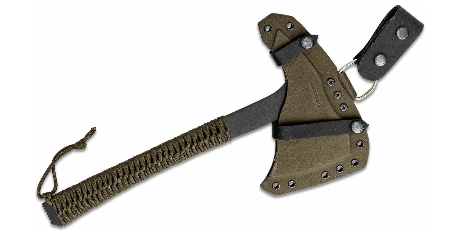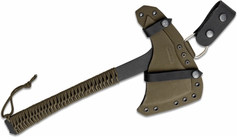 Den robuste og alsidige tomahawk Condor Sentinel Axe Army Green klarer hugning, skæring, brækning, knækning, gennembrydning og kast. Den fuldmetal konstruktion i 1075 kulstofstål med sort overfladebehandling og paracord-greb sikrer høj holdbarhed samt et behageligt og sikkert greb. Medfølger et robust kydex-hylster fra 710 Custom Sheaths til bæring i bælte, på rygsæk eller udrustning.