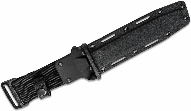 Det ergonomiske håndtag i Kraton ligger fremragende i hånden, glider ikke selv i vådt miljø og beskytter sammen med det dobbelt parérstykke fingrene mod skader. Kniven leveres med en Kydex-skede, som muliggør sikker og fleksibel bæring.
