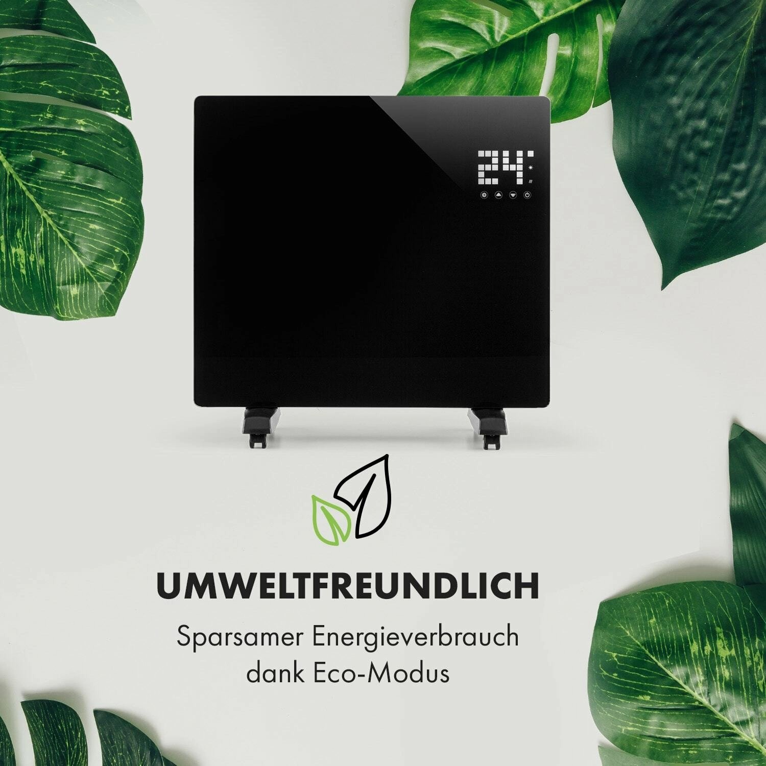 Den elegante konvektor Klarstein Bornholm Single Smart leverer hurtig og jævn opvarmning af rum op til 20 m². Den tilbyder 2 effektniveauer (500/1000 W), en præcis termostat op til 45 °C, ECO-tilstand for energibesparelse samt styring via Wi‑Fi-app, touchpanel og fjernbetjening. Den glaspanelerede front med IP24 er egnet til badeværelset, og en ugentlig timer sørger for varme præcis, når du har brug for det.
