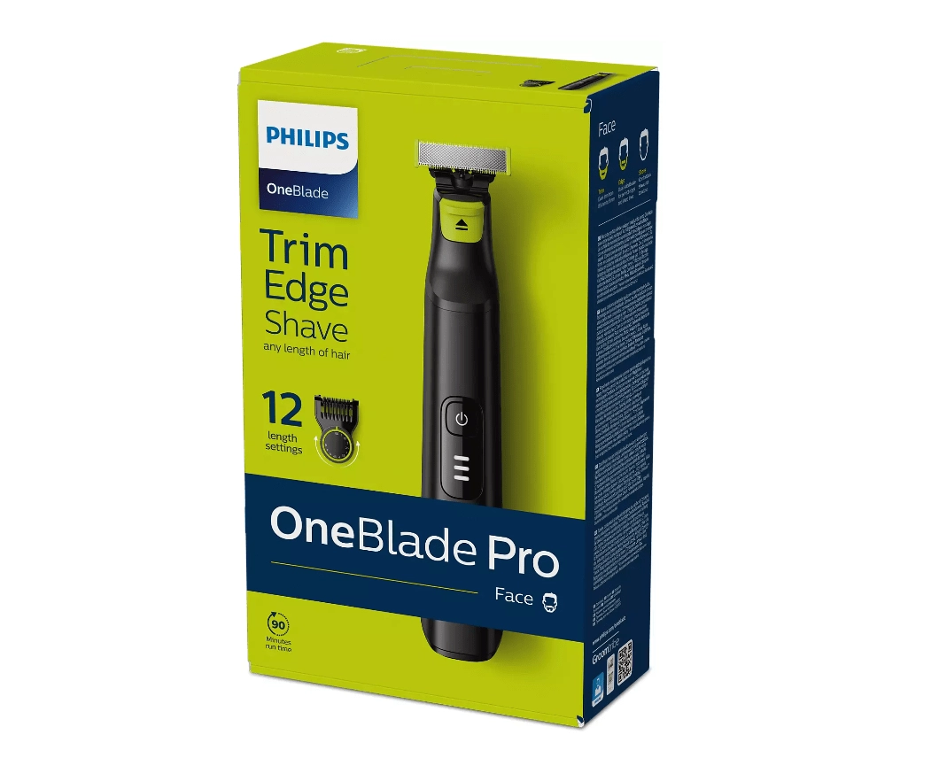 Den hybride trimmer Philips OneBlade til pleje af skæg og krop klarer trimning, formning af linjer og glat barbering af hår i alle længder. Med en klinge, der leverer 200 bevægelser i sekundet, en glat belægning og afrundede spidser er den skånsom mod huden og effektiv selv på længere skæg. Der medfølger en præcis kam med 12 længder (0,5–9 mm) til perfekt stub eller længere skæg, en dobbeltsidet klinge til præcise linjer og mulighed for tør- og vådbrug. Hurtig opladning på 1 time giver op til 90 minutters trådløs brug.