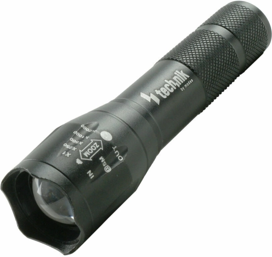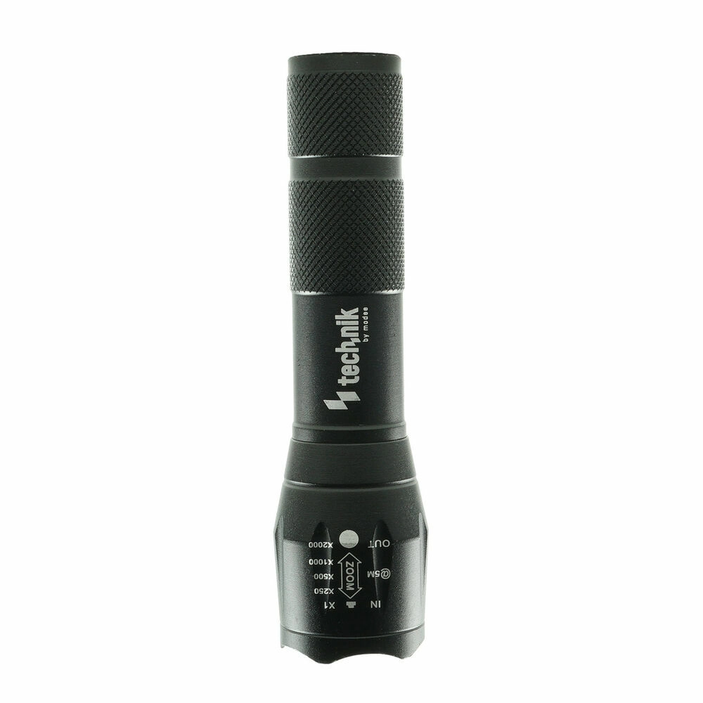 Lommelygten Technik MT-P5 er en pålidelig makker i byen såvel som i naturen. Det robuste hus i aluminiumslegering med skridsikker riffelering ligger godt i hånden og modstår krævende forhold. Det skydelige hoved muliggør trinløs fokusering (zoom) fra bred spredning til smal langdistance-stråle, så du nemt kan tilpasse rækkevidden til situationen.