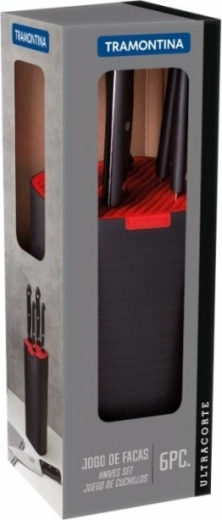 Den stilfulde knivblok i polypropylen holder knivene overskueligt og sikkert placeret på køkkenbordet. Vedligeholdelsen er nem – hele sættet kan uden problemer vaskes i opvaskemaskinen. Leveres i gaveæske, ideelt som en praktisk og elegant gave til madentusiaster.