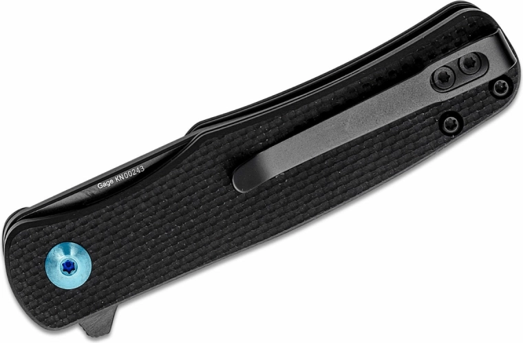 Skæftet af G10 i elegant sort er stærkt, skridsikkert og behageligt formet for et sikkert greb. Med den integrerede clips kan kniven nemt og diskret bæres i lommen, på bæltet eller på kanten af en rygsæk.