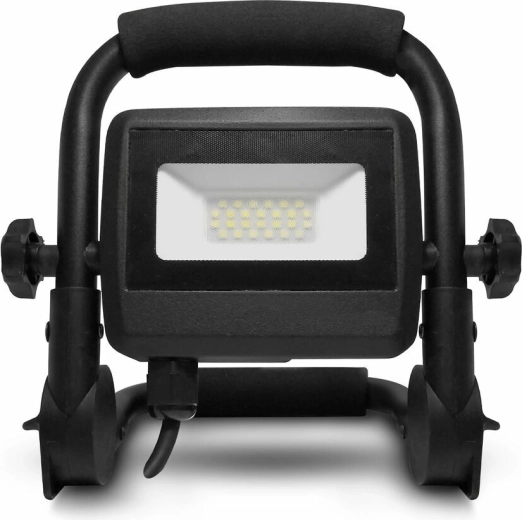 Den bærbare LED-projektør fra Modee leverer effekt på 10 W, lysstyrke 1170 lm og en bred lysvinkel på 120°. Takket være IP65-klassificeringen modstår den støv og stænkende vand, har en levetid på 25.000 timer og tilbyder behageligt neutralt hvidt lys på 4000 K. Der medfølger en 150 cm kabel og et vipbart hoved til præcis retningsbestemmelse af lyset.