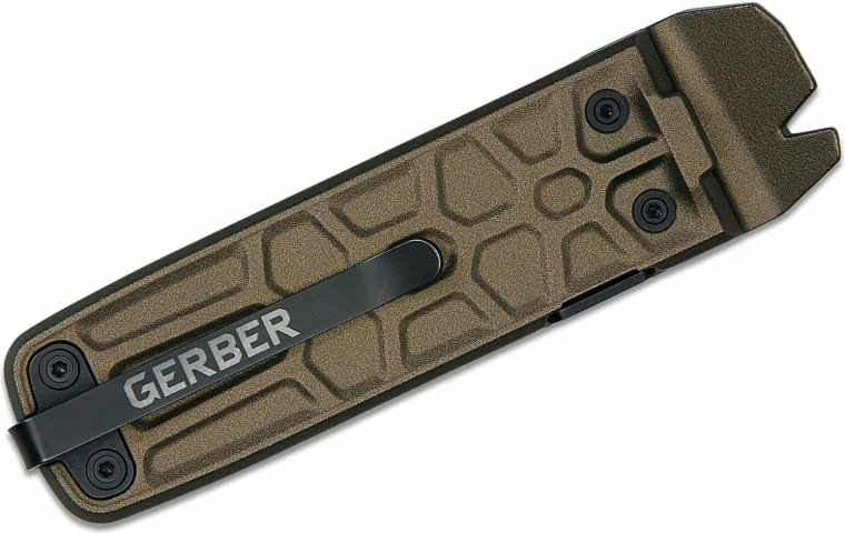 Takket være aluminiumskaftet i bronzefarve og det praktiske klip kan den nemt fæstes i lommen eller på udstyrets kant. Framelock sikrer sikker arbejde med klingen, mens fladskruetrækkere, brydejern og sømudtrækker udvider anvendelsesmulighederne i hjemmet og udendørs.