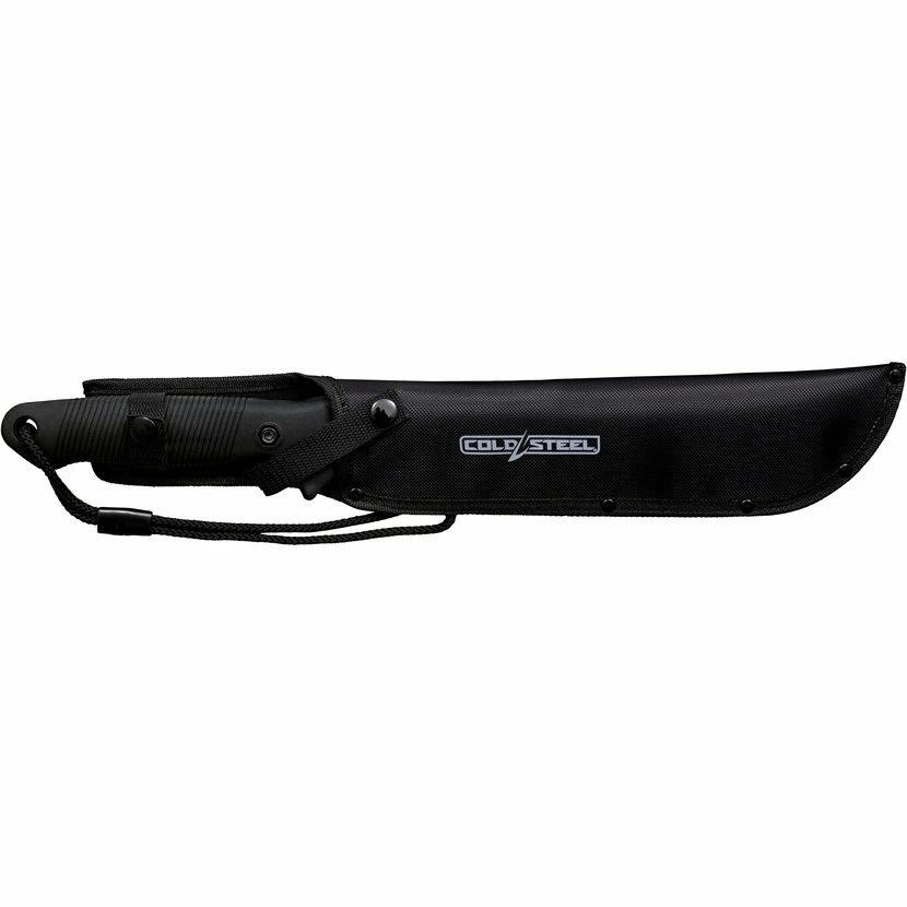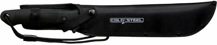 Let og holdbar Cold Steel Axis machete til arbejde i naturen, der kombinerer egenskaberne fra en stor bushcraft-kniv og en økse. Den tilbyder kulstofstål med sort overfladebehandling, har savtænder på ryggen til skæring af træ og et komfortabelt gummihåndtag med skridsikker tekstur. Inkluderer et nylonhylster til bælte for sikker bæring.