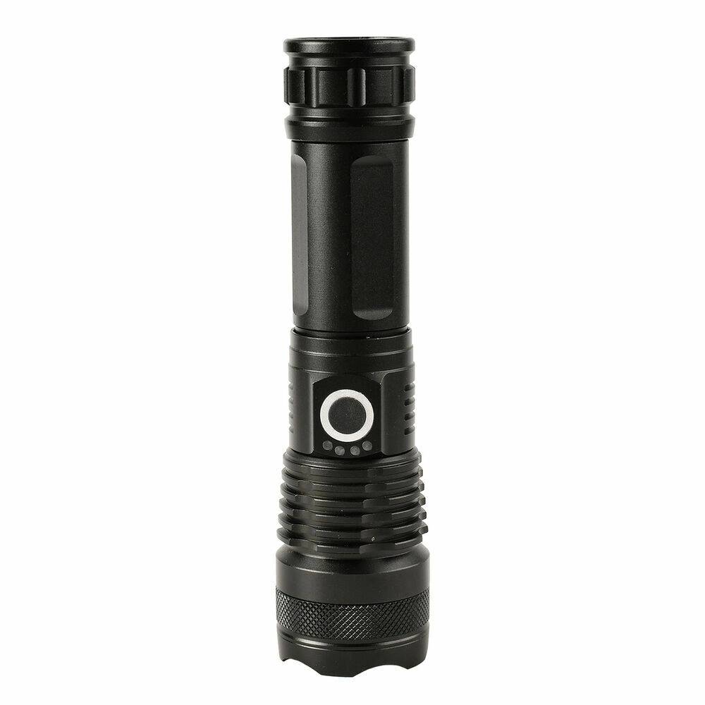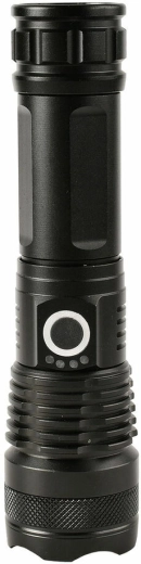 Det indbyggede batteri af typen 26650 med en kapacitet på 3500 mAh oplades via USB‑C. Fuld opladning tager cirka 2–3 timer og kan klares fra enhver USB-port eller powerbank ved hjælp af det medfølgende kabel. Den enkle betjening gør det let hurtigt at tænde/slukke og ændre lysstyrke, mens zoomen trinløst justerer strålens bredde og rækkevidde ved at dreje lygtehovedet.