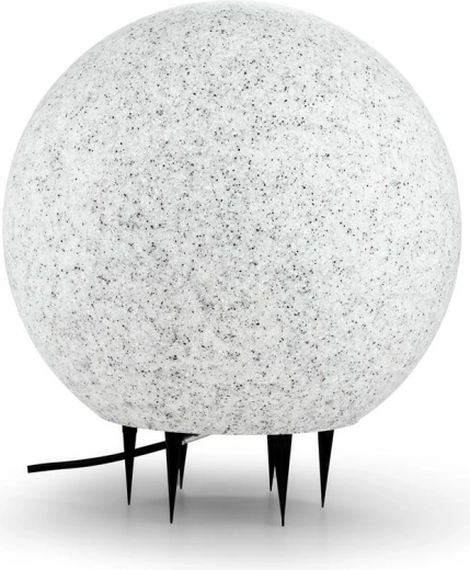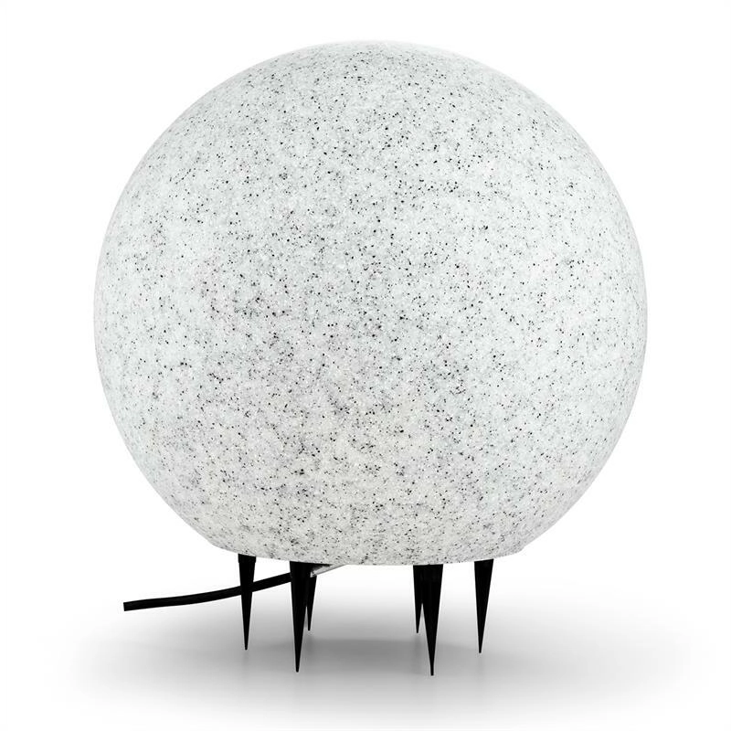 Den realistiske stenstruktur pynter i haven selv uden at være tændt. Efter mørkets frembrud spreder kuglen lyset jævnt og skaber en beroligende atmosfære på stier, terrasser og mellem bedene.
