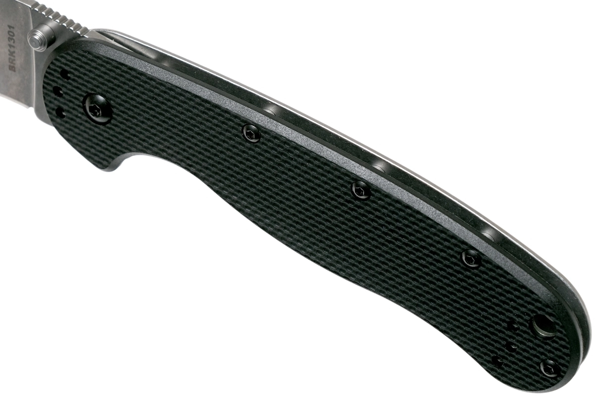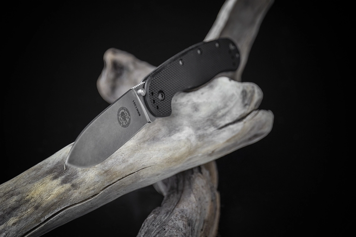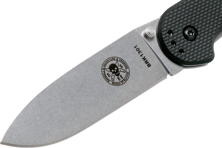 Det ergonomiske FRN-skæfte i kombination med en stålramme giver et fast og sikkert greb. Énhåndsbetjent åbning med tommelstud og framelock-lås øger både sikkerhed og komfort under brug. Lommeklip og snorhul gør daglig bæring og hurtig adgang lettere.