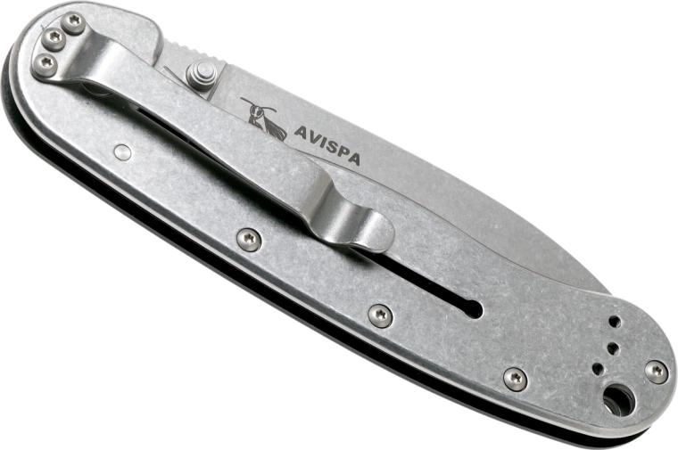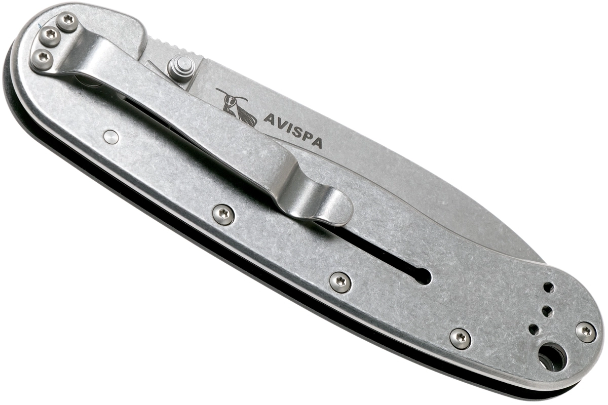 Praktisk EDC-kniv til hverdagsbrug – ESEE Avispa tilbyder en robust klinge i D2-stål med stonewash-finish, en pålidelig framelock-lås og sikkert greb takket være sort FRN-skæfte. Åbnes med tommelstud, clip til lommebæring og hul til snor gør den til et godt valg både i byen og i naturen.