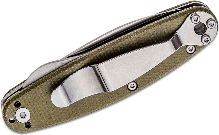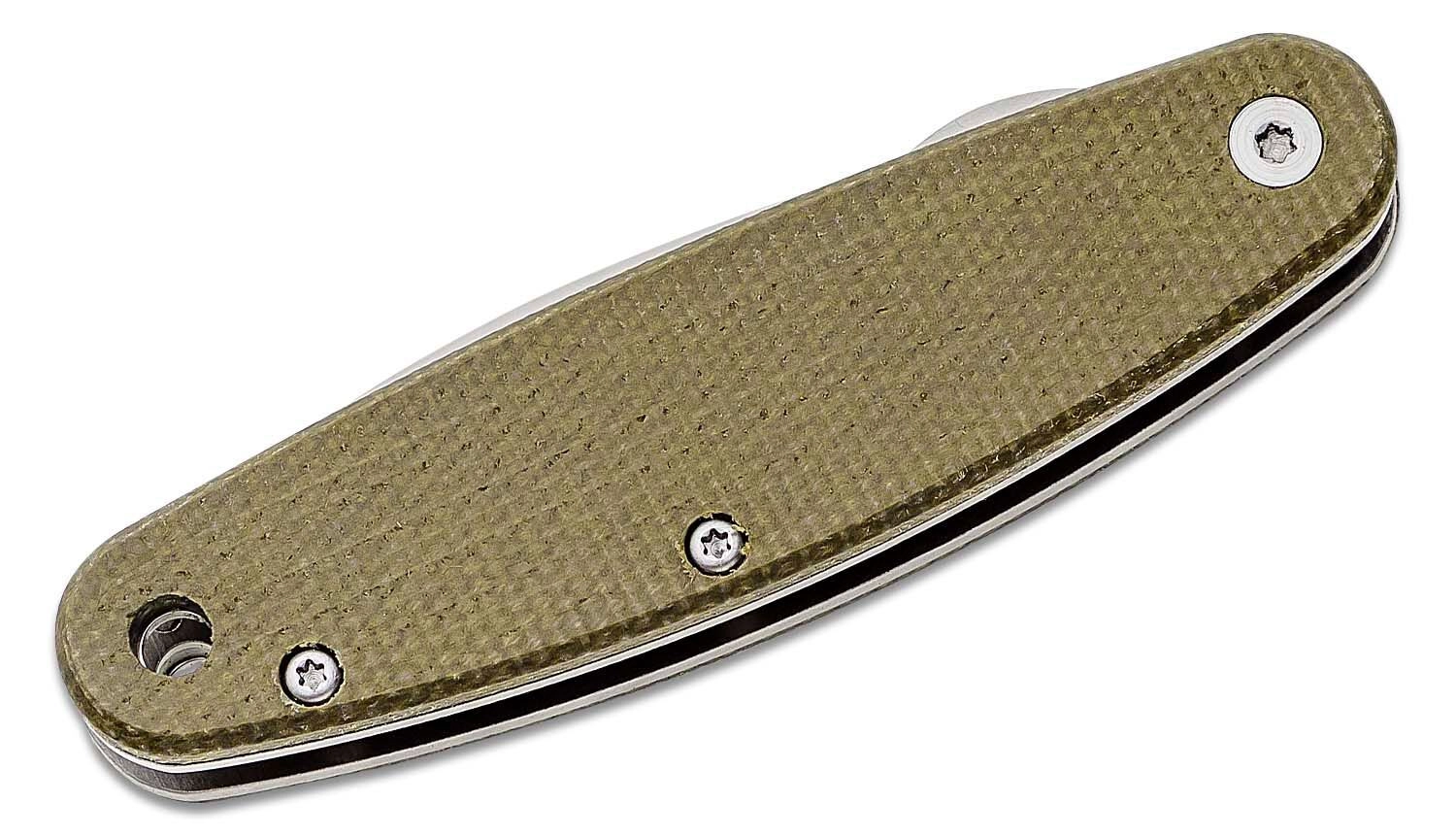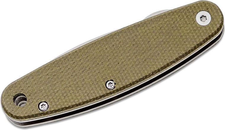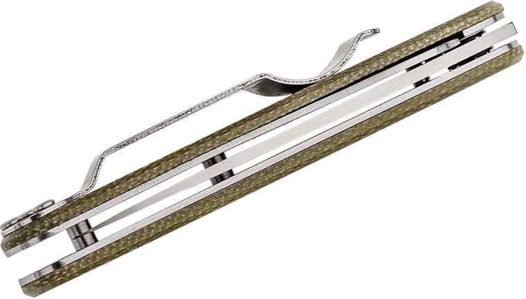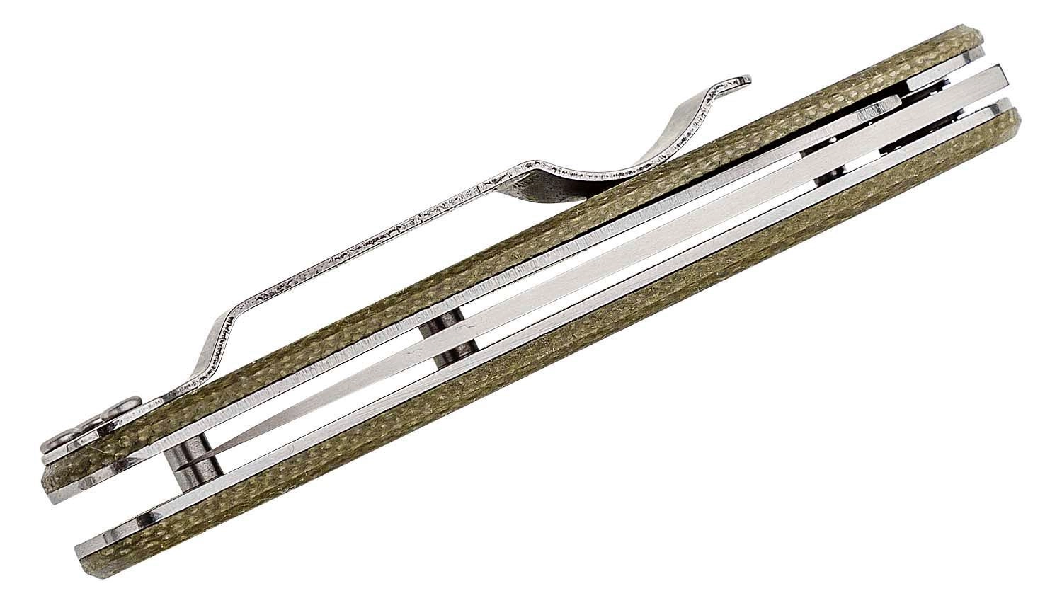 Teksturerede grønne Micarta-skaller giver komfortabelt og sikkert greb selv ved længere tids brug. Et ideelt valg til hverdagen.