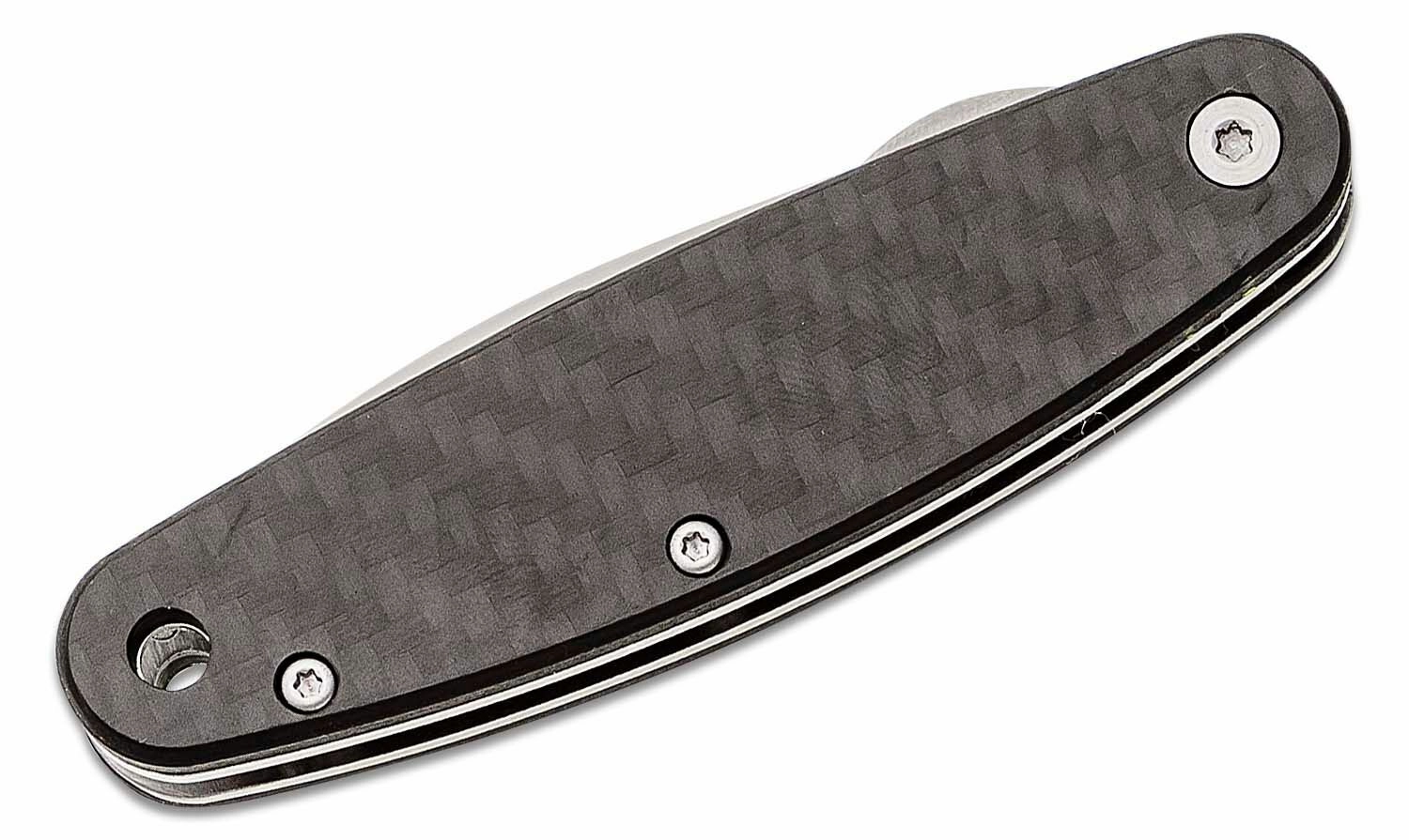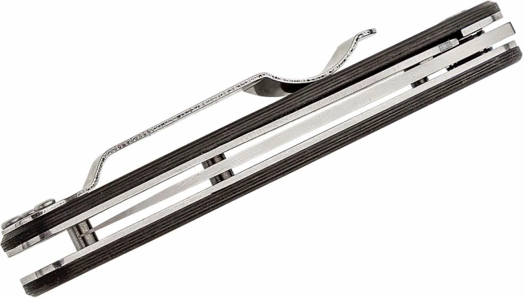 Kulfiberhåndtaget giver et fast, let og komfortabelt greb. Den praktiske lommeclips fastholder kniven sikkert ved lommens kant, mens hullet til snor gør det muligt at fastgøre paracord eller vedhæng. Det minimalistiske design og de kvalitetsmaterialer gør denne model til et fremragende EDC-værktøj til både by og natur.