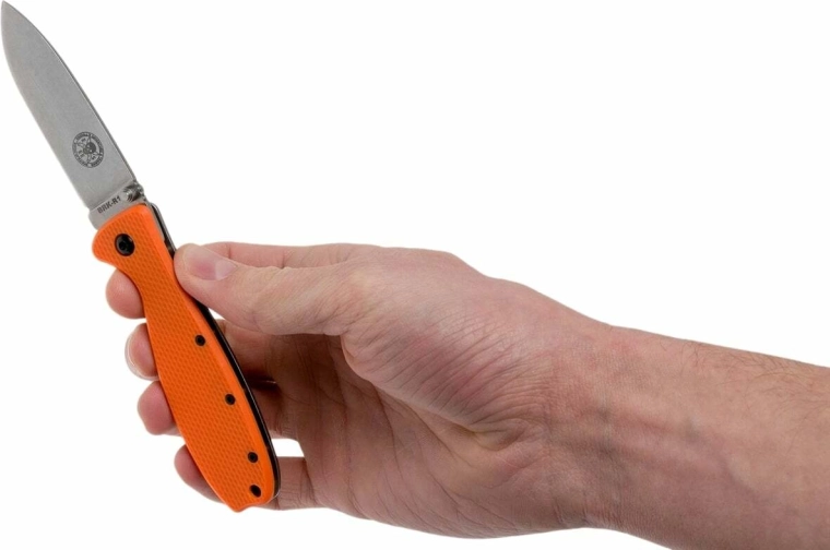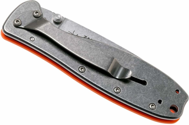 Det teksturerede orange FRN-skæfte giver sikkert greb også med handsker, og den lave vægt er en fordel til EDC-bæring. Den praktiske lommeclip kan vendes i to positioner, og hullet til snor udvider fastgørelsesmulighederne.