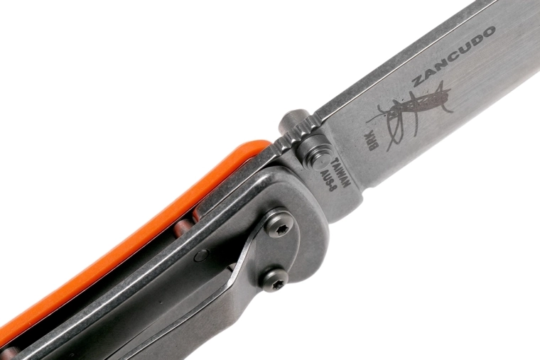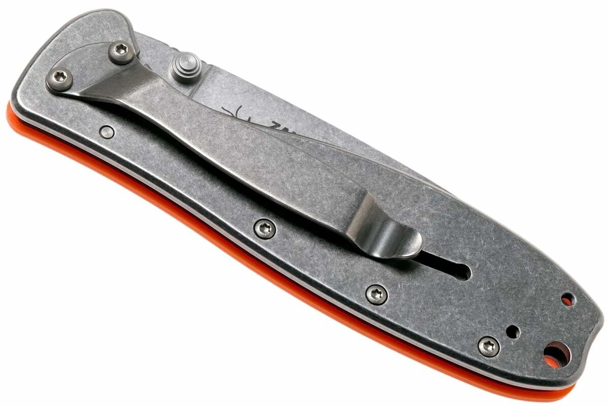 Den kompakte EDC-kniv ESEE Zancudo byder på let konstruktion, en holdbar AUS-8 stålklinge med stonewash-finish og en pålidelig Frame Lock-lås. Med tommelstud for hurtig åbning, tekstureret orange FRN-skæfte og lommeclip er den ideel til hverdagsbrug og præcise snit.
