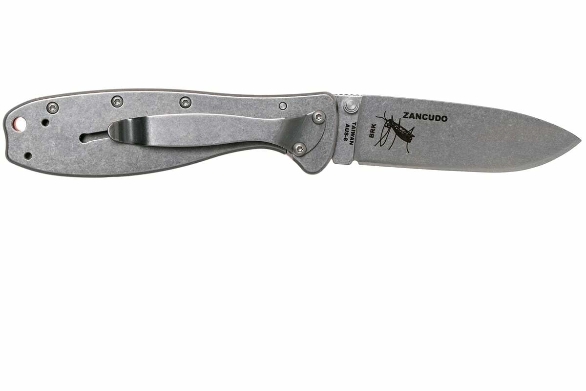 ESEE Zancudo er en slank og diskret lommekniv designet til daglig brug. Det kvalitetsrustfri stål AUS-8 med stonewash-overflade skjuler små ridser bedre og leverer et pålideligt snit. Tommelstud muliggør komfortabel enhåndsåbning, mens Frame Lock holder klingen sikkert på plads.