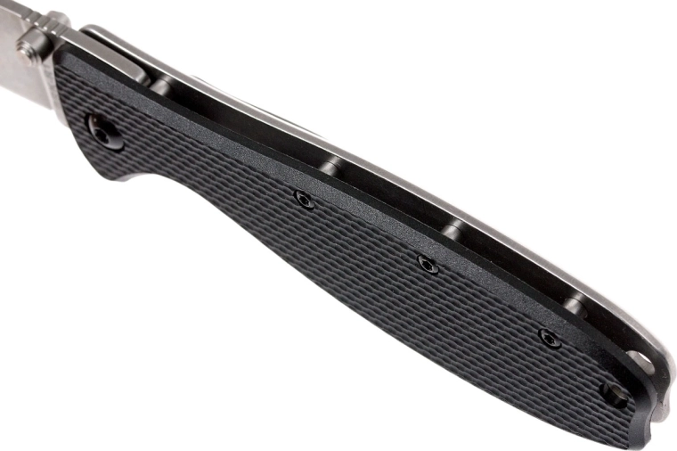 Det sorte FRN-skæfte med skridsikker tekstur ligger godt i hånden og belaster ikke lommen. Den topositions lommeclips giver fleksibel bæring, og snorhullet udvider mulighederne for sikring og personlig tilpasning.