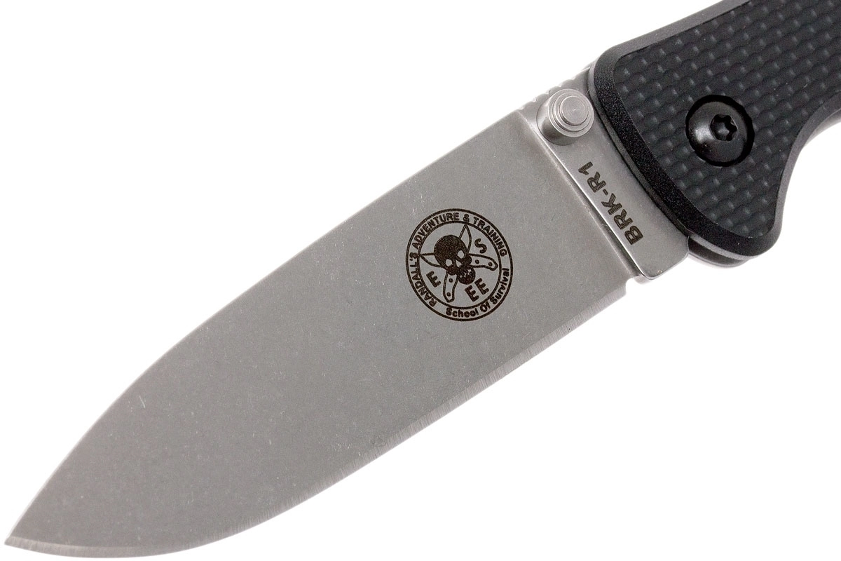 De teksturerede sorte FRN-skaller giver et fast greb; skæftet har snorhul og en clips for komfortabel lommebæring.