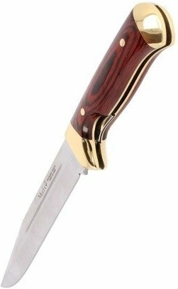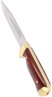 Klingen af molybdæn-vanadium (MoVa) stål med satinfinish holder skæret og modstår korrosion. Liner Lock låser pålideligt klingen under brug. Det ergonomiske skæfte i lagdelt Pakka-træ, suppleret af messingparérstykke og pommel, sikrer et behageligt og sikkert greb selv ved længere tids brug. Medfølger gør et brunt læderetui for sikker og stilfuld bæring.