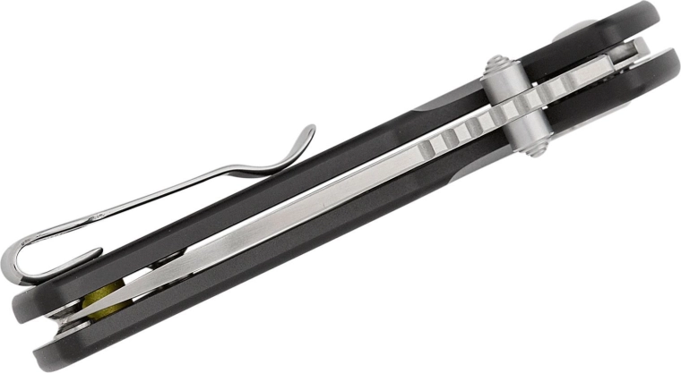 En solid stål-lommeclip holder kniven sikkert ved lommens kant. Diskret og pålidelig opbevaring i hverdagen.