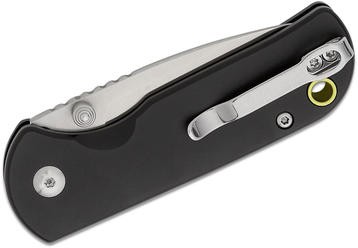 Den kompakte foldekniv CJRB Mica er ideel til daglig EDC-brug. Den byder på en glat Drop Point-klinge af den patenterede ståltype AR-RPM9 med sandpoleret finish, keramiske lejer for silkeblød åbning via tommelstud samt en sikker Button Lock-lås. Det lette aluminiumsskaft i sort med snorøje og lommeclip sikrer komfortabel og tryg bæring.