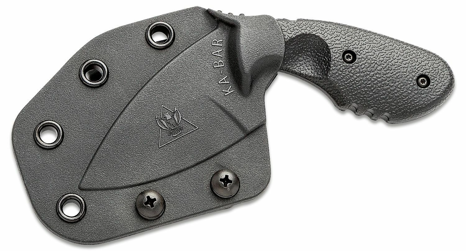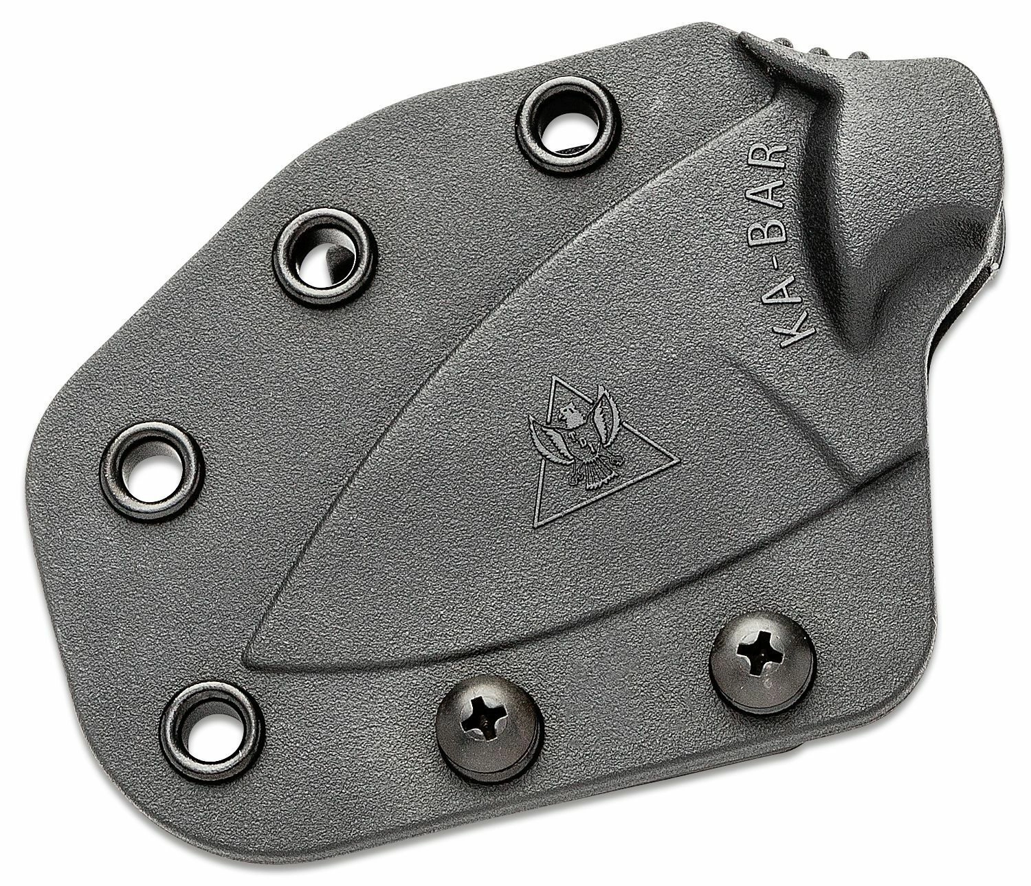 Håndtaget i Zytel (nylon forstærket med glasfibre) giver enestående modstandsdygtighed over for stød, kemikalier og vejrlig. Den fine skridsikre tekstur og ergonomiske form giver brugeren sikkerhed og kontrol selv i våde eller stressede situationer. Kydex-skeden muliggør fleksibel montering, er MOLLE-kompatibel og suppleres af en vendbar metalclip for behagelig bærelse på bælte.