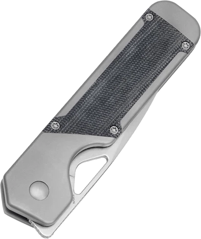 Åbningen er hurtig og sikker – brug enten tommelhullet eller den forreste åbner, Front Flipper. Den robuste Framelock-lås giver tryghed under brug. Det ergonomiske skæfte er en kombination af titanium og Micarta, hvilket giver lav vægt, behageligt greb og lang levetid. En praktisk 3D titanium lommeclips muliggør diskret højrehåndsbæring.