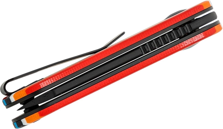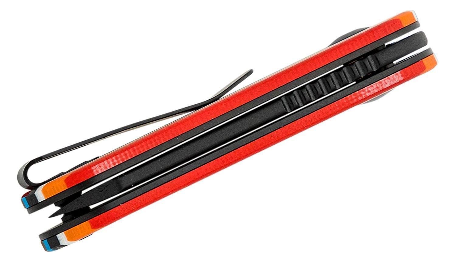 Teksturerede, flerfarvede G10-skaler giver sikkert greb selv i vådt vejr. Den vendbare klips muliggør komfortabel bæring efter præference.