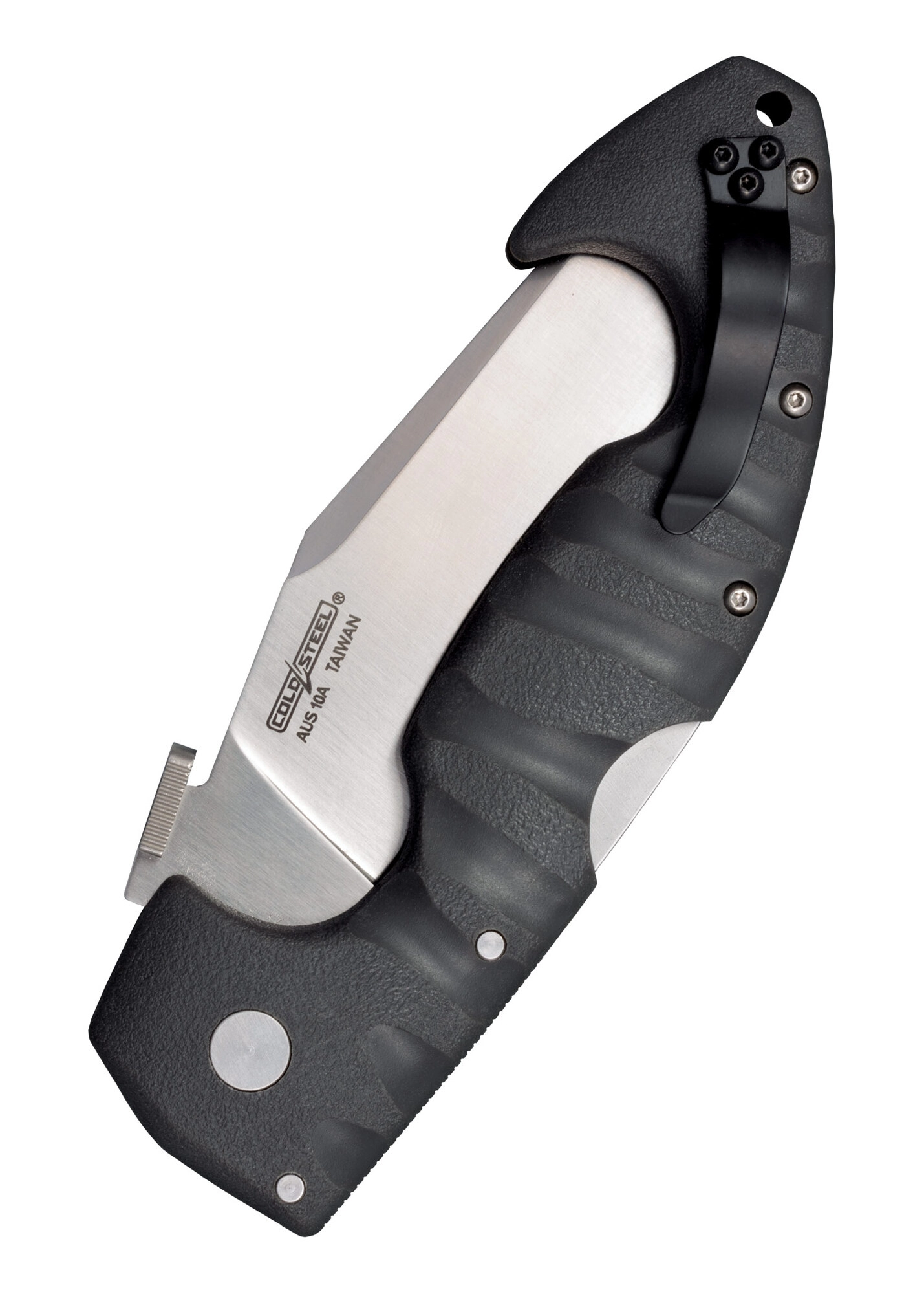 Den robuste foldekniv Cold Steel Spartan Serrated, inspireret af den spartanske KOPIS-sværdform, tilbyder en takket klinge i japansk stål AUS-10A med satinfinish, sikker Tri-Ad Lock-lås og et slidstærkt Griv-Ex-skæfte i grå. Åbning er hurtig takket være tommel-skive, og der er både lommeclip og hul til snor.