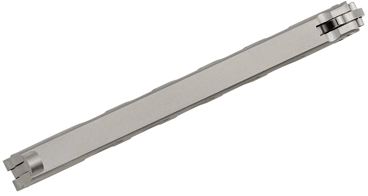 Den mekaniske lås for enden af skæftet fastholder kniven sikkert i både åben og lukket position for sikker bæring og betjening.