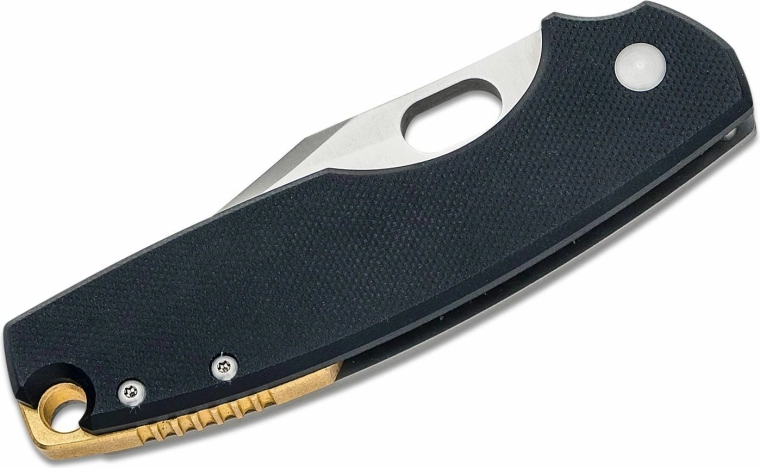 Tekstureret G10 for sikkert greb og en stålbackramme for styrke. Der er også et hul til snor for nem udtagning fra lommen.