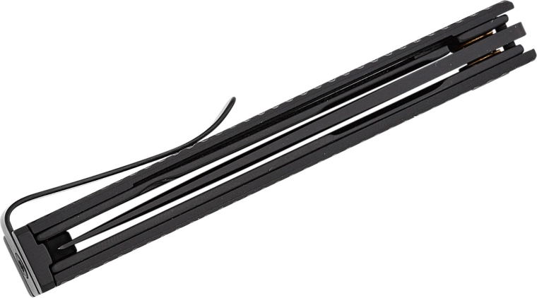 Takket være IKBS-kuglelejer åbner klingen hurtigt og glat via flipperen, mens Liner Lock-låsen holder sikkert under arbejdet. Det teksturerede aluminiumskaft i sort giver tryg håndtering, og den vendbare lommeclip muliggør diskret og komfortabel bæring.