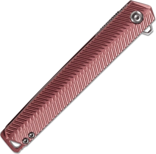 Elegant EDC-kniv designet af Ken Onion, der kombinerer en slank profil, en pålidelig Sandvik 12C27-klinge og hurtig IKBS-åbning med flipper. Det lette aluminiumskaft i vinrød farve giver et sikkert greb, lommeclip og hul til snor.